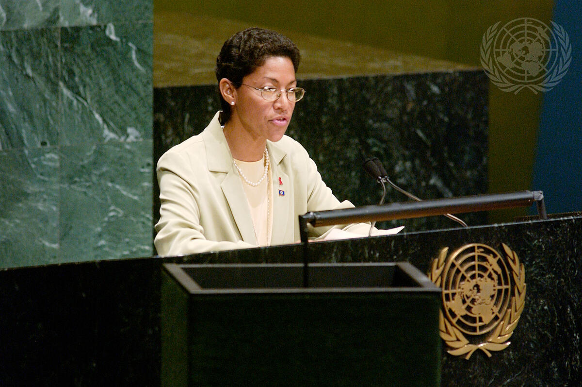 Dolores Balderamos-Garcia, Permanent Representative of Belize to the United Nations, addresses the General Assembly.