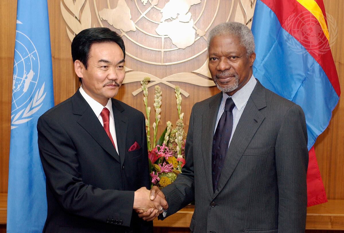 Secretary-General Kofi Annan (right) meets with Natsagiyn Bagabandi, President of Mongolia.