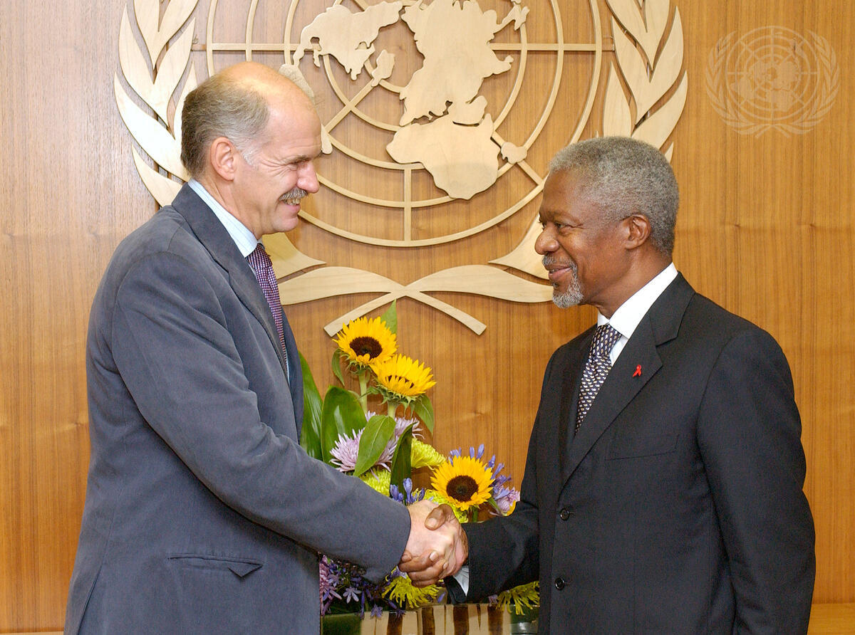 Secretary-General Kofi Annan (right) meets with George A. Papandreou, Minister for Foreign Affairs of Greece.