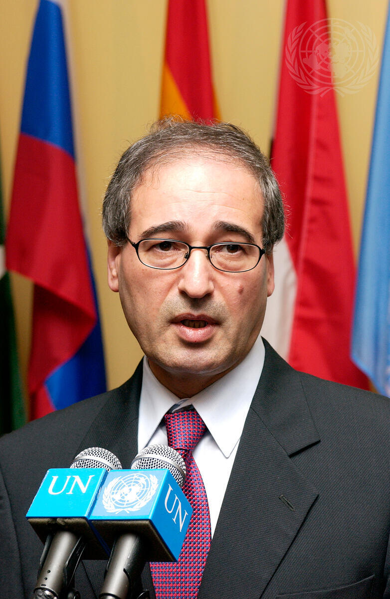 Fayssal Mekdad, Permanent Representative of the Syrian Arab Republic to the United Nations, briefs correspondents at the Security Council stakeout prior to this afternoon's Security Council meeting on the Palestinian question.