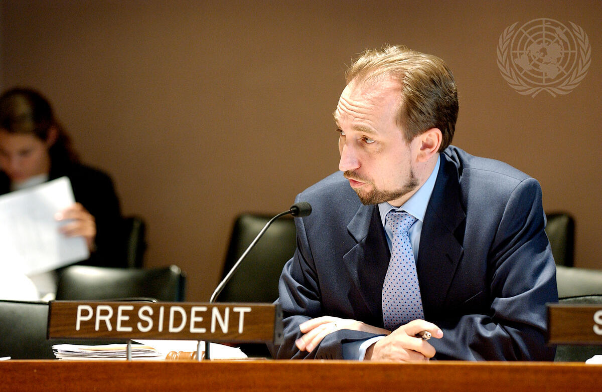 Zeid Ra'ad Al-Hussein, Permanent Representative of Jordan, presides over an event at UN Headquarters.