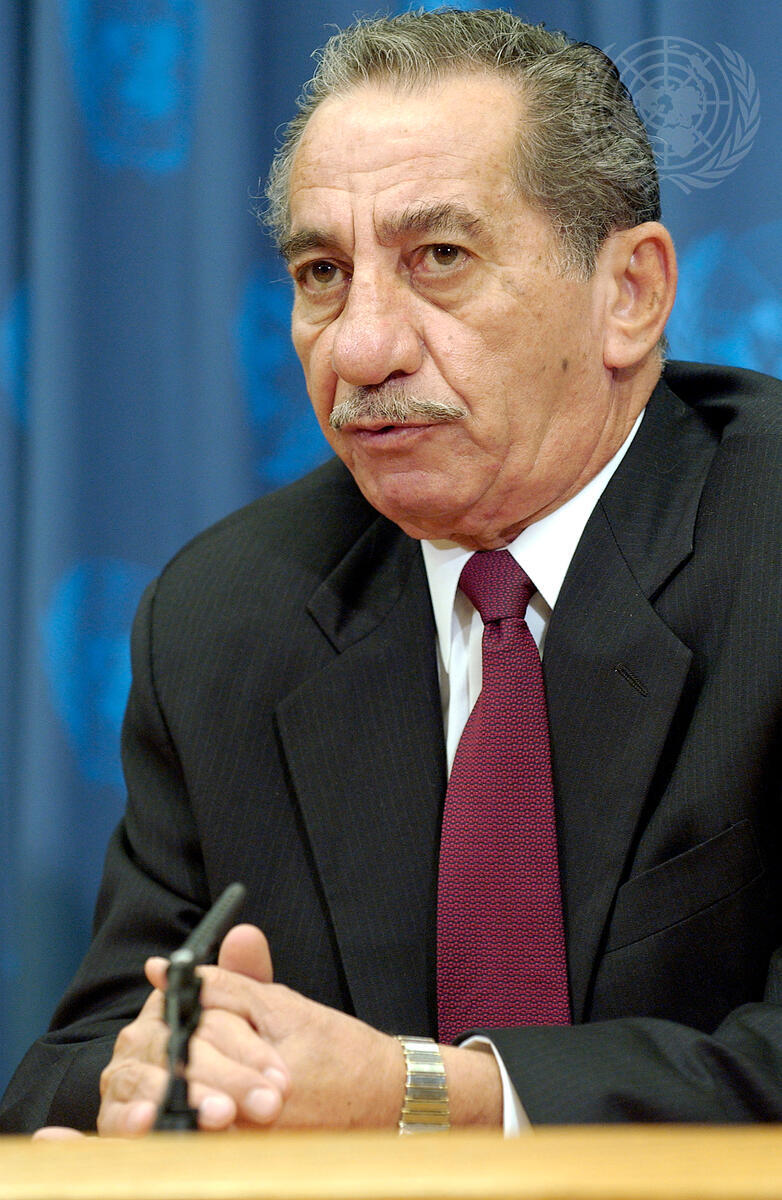 Tassos Papadopoulos, President of the Republic of Cyprus, briefs correspondents today at UN Headquarters.