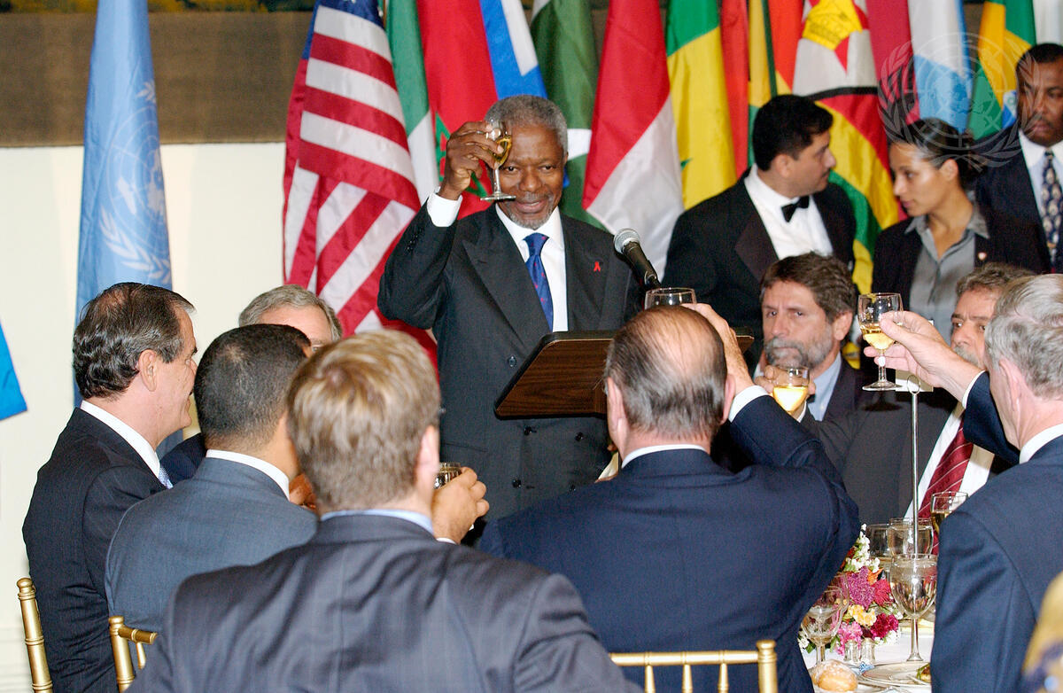 Secretary-General Kofi Annan (centre, standing) gives a toast to all his guests at an annual luncheon the Secretary-General hosts in honour of the Heads of State and Governments attending the fifty-eighth sessioI of the General Assembly.