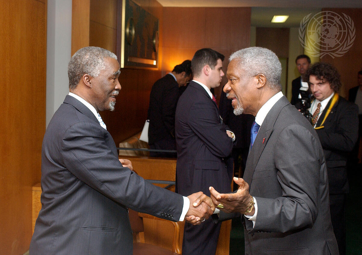 Thabo Mbeki (left), President of South Africa, with Secretary-General Kofi Annan at UN Headquarters today.