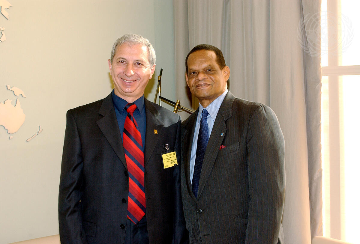 Julian Robert Hunte (Saint Lucia) (right), President of the fifty-eighth session of the General Assembly, meets with Ognian Gerdjikov, President of the National Assembly of the Republic of Bulgaria.