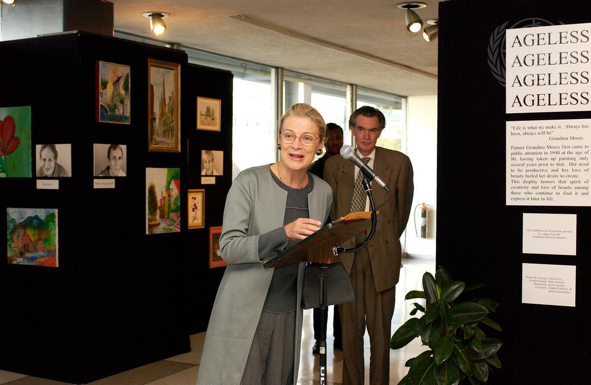 ""Ageless,"" an exhibit of paintings accompanied by photographs of the contributing artists to commemorate the International Day of Older Persons(1 October), opened in the Visitors' Lobby, 2 October 2003. The exhibit is sponsored by the Manhattan Plaza Foundation of New York Gty, and organized in cooperation with the NGO Committee on Ageing, DPI and DESA.