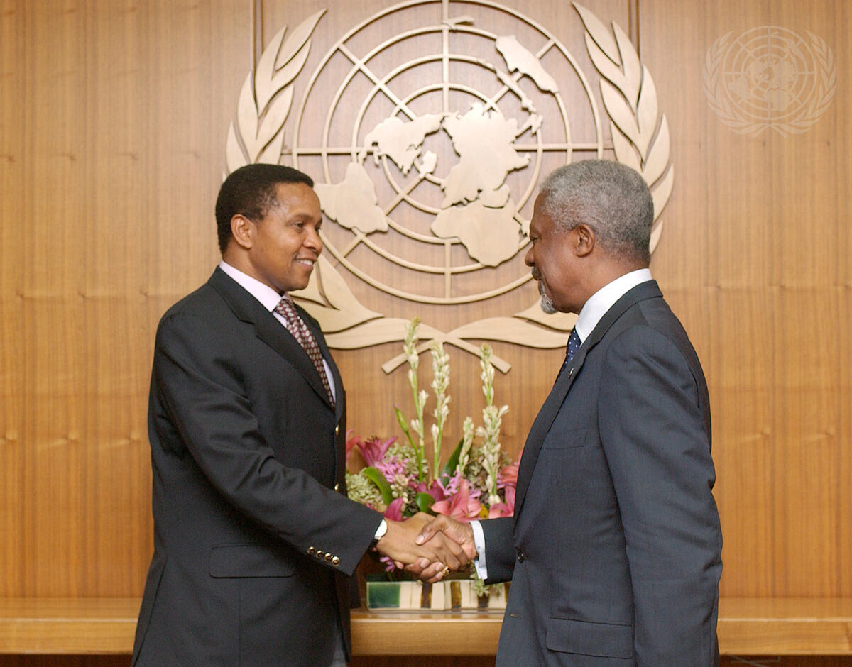 Secretary-General Kofi Annan (right) meets with Jakaya Mrisho Kikwete, Minister for Foreign Affairs and International Cooperation of the United Republic of Tanzania.