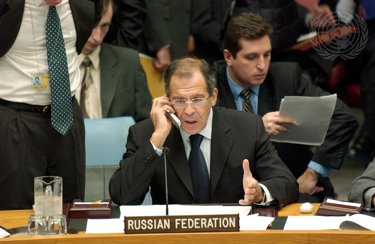 Sergey V. Lavrov, Permanent Representative of the Russian Federation to the United Nations, speaking on the phone before today's Security Council meeting.