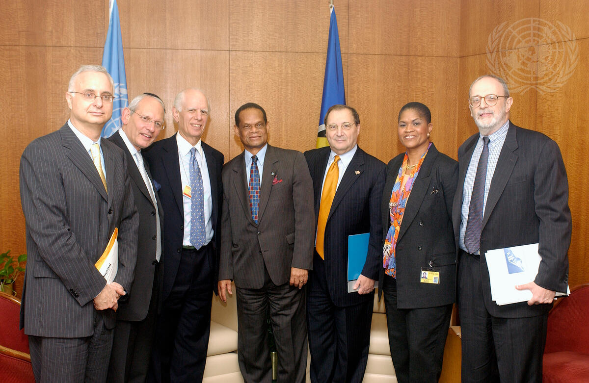 Julian R. Hunte (centre), President of the fifty-eighth session of the General Assembly, meets with a delegation from the Anti-Defamation League.