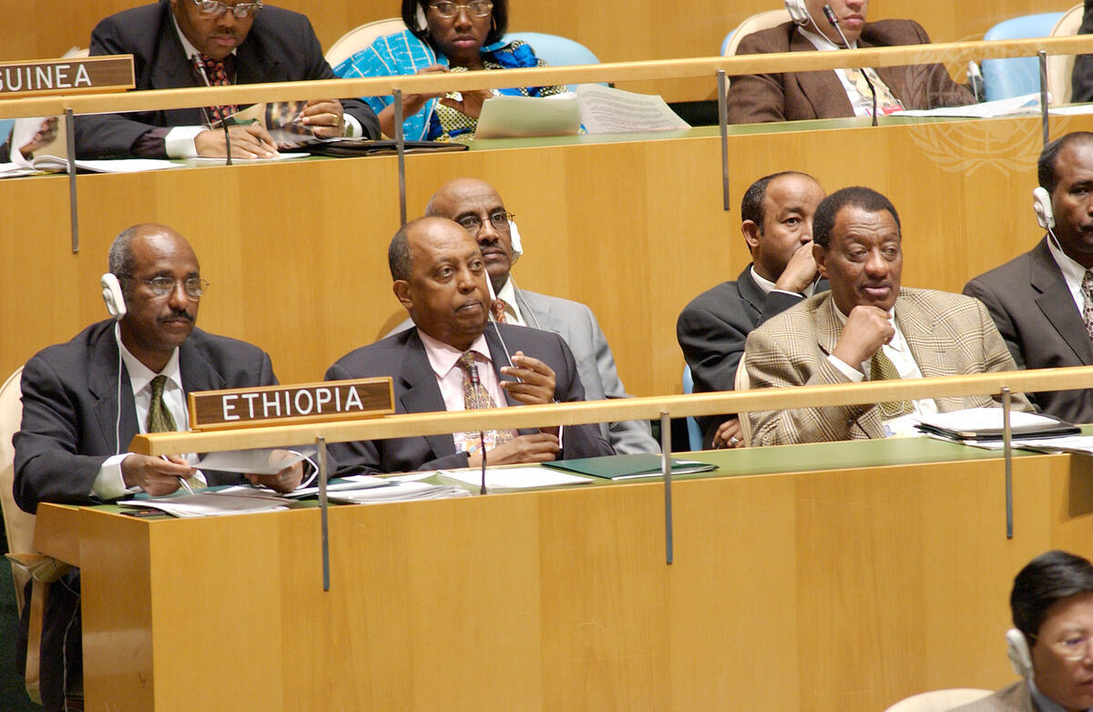 The delegation of the Federal Democratic Republic of Ethiopia, headed by Seyoum Mesfin (behind nameplate), Minister for Foreign Affairs of the Federal Democratic Republic of Ethiopia, at the fifty-eighth session of the General Assembly.