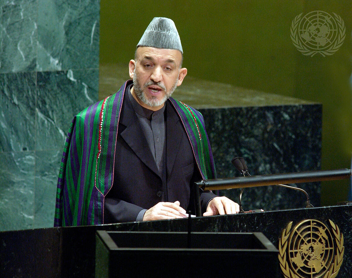 Hâmid Karzai, President of Afghanistan, addresses the fifty-eighth session of the General Assembly.