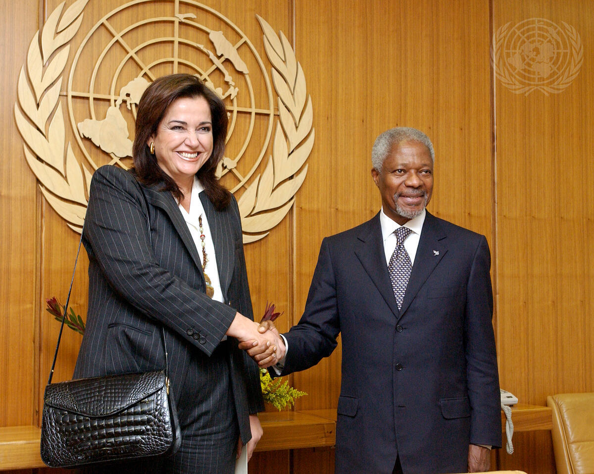 Secretary-General Kofi Annan (right) meets with Dora Bakoyianni, the first woman Mayor of the City of Athens, Greece.