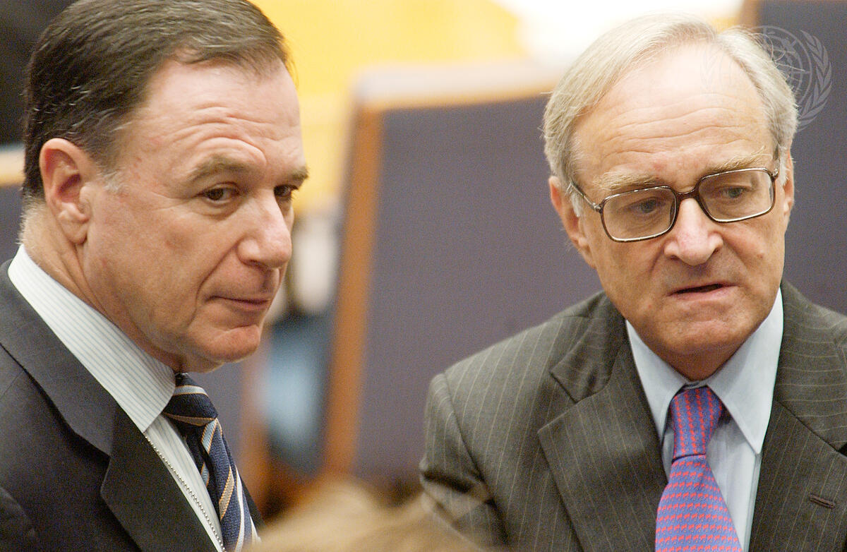 Dan Gillerman (left), Permanent Representative of Israel to the United Nations, and Jean-Marc de La Sabliere, Permanent Representative of France to the United Nations, before today's Security Council meeting.
