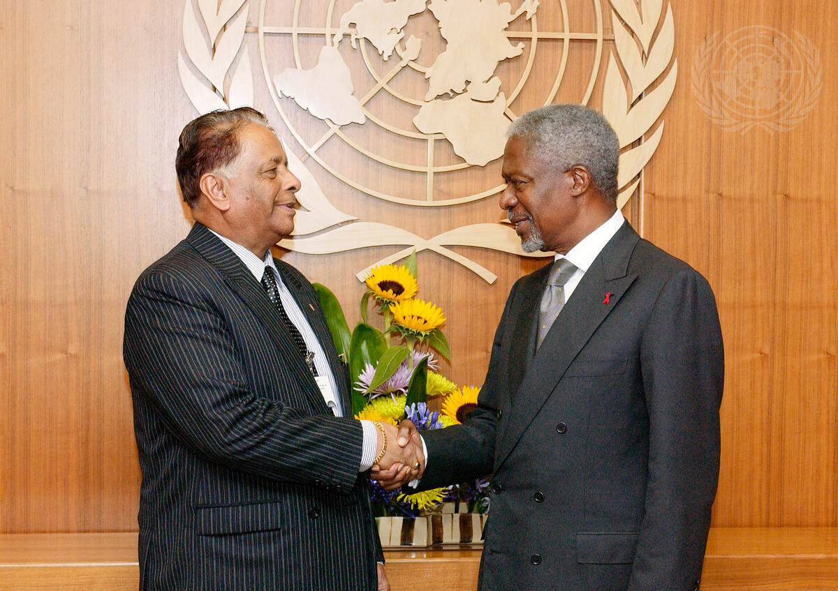 Secretary-General Kofi Annan (right) meets with Anerood Jugnauth, Prime Minister of the Republic of Mauritius.