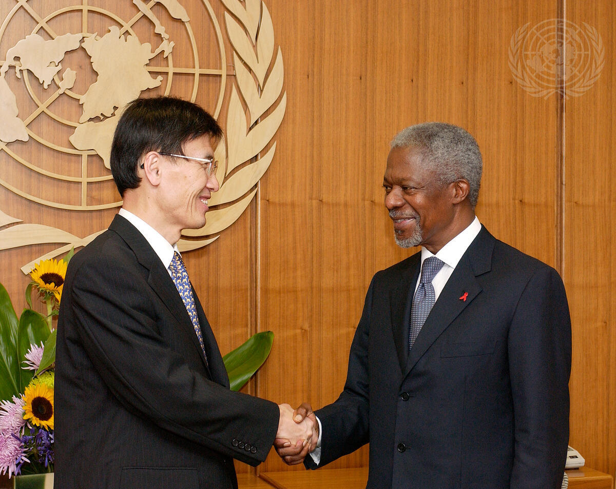 Secretary-General Kofi Annan (right) meets with Yoon Young-kwan, Minister for Foreign Affairs and Trade of the Republic of Korea.