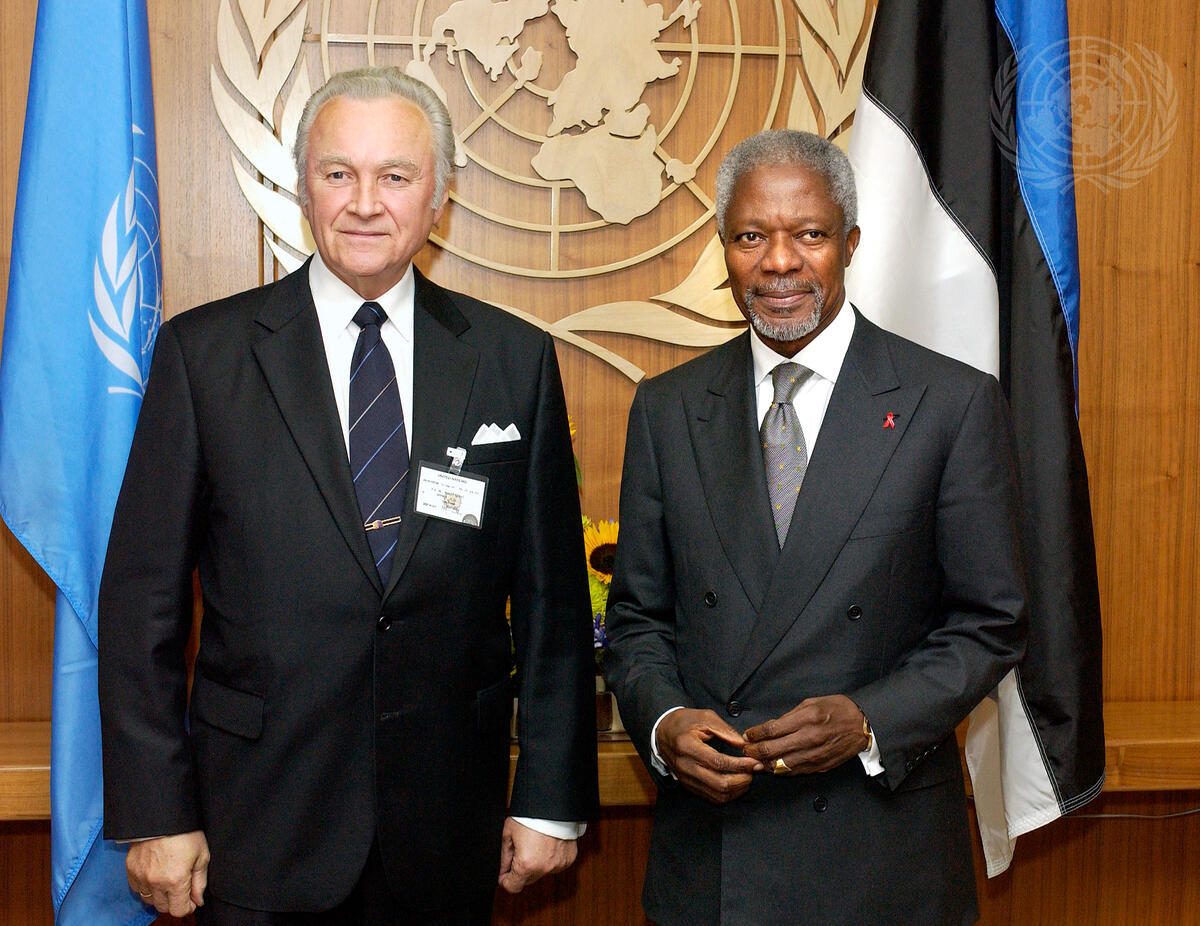 Secretary-General Kofi Annan (right) meets with Arnold Rüütel, President of the Republic of Estonia.