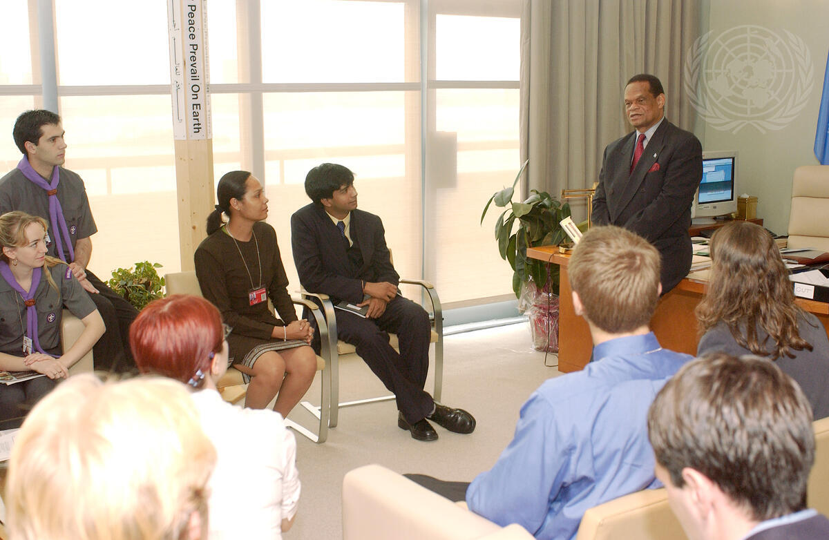 Julian Robert Hunte (Saint Lucia) (top right), President of the fifty-eighth session of the General Assembly, meets with the Third Committee (Social, Humanitarian and Cultural) Youth Representatives.