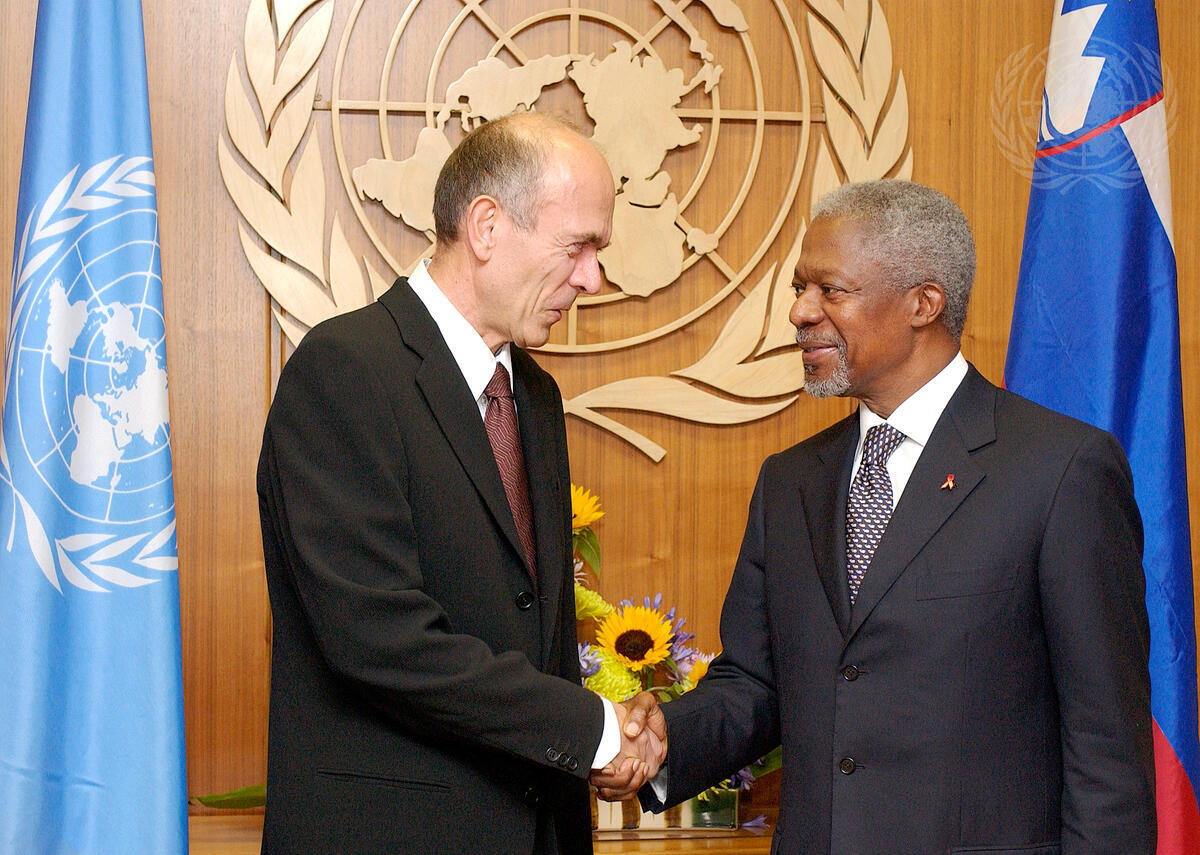 Secretary-General Kofi Annan (right) meets with Janez Drnov?ek, President of the Republic of Slovenia.