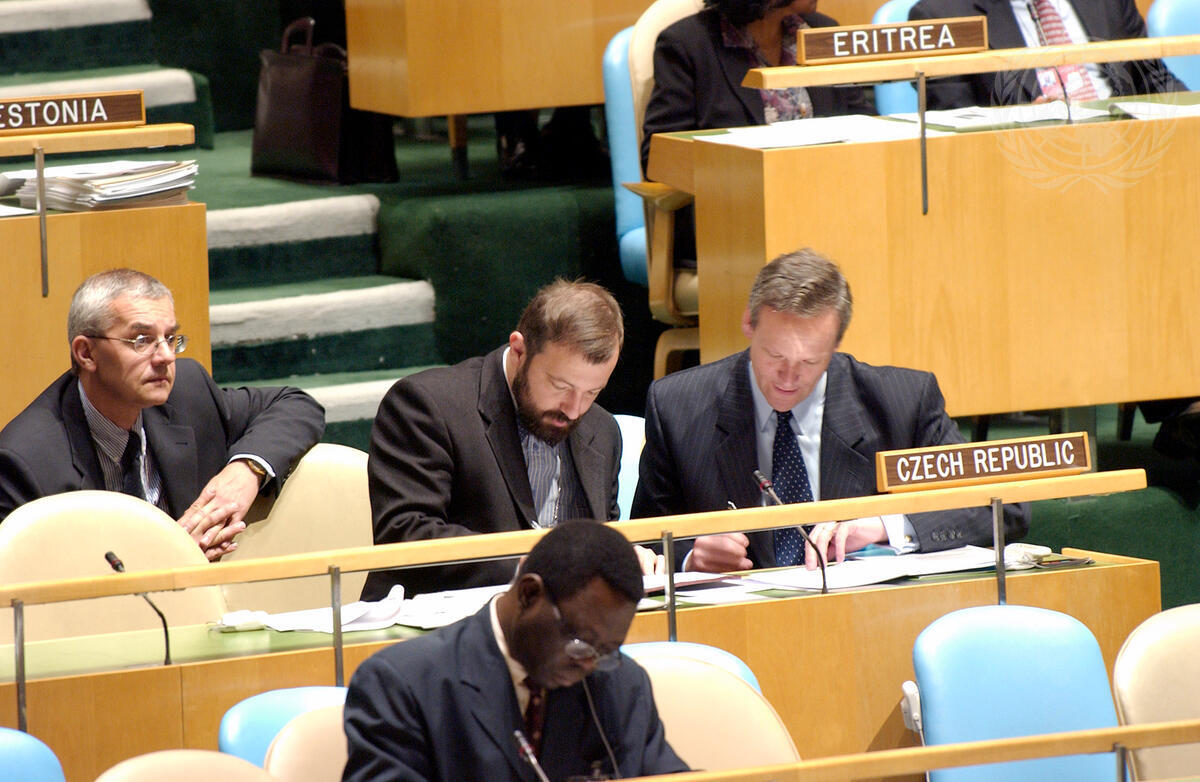 The delegation of the Czech Republic, headed by Cyril Svoboda (behind nameplate), Deputy Prime Minister and Minister for Foreign Affairs of the Czech Republic, at the fifty-eighth session of the General Assembly.
