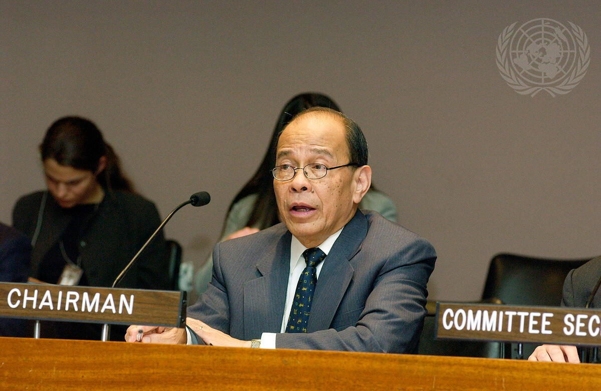 Lauro Liboon Baja Jr., Chairman of the Sixth Committee (Legal), and Permanent Representative of the Republic of the Philippines to the United Nations, chairs the meeting.