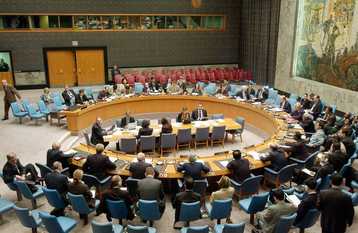 A wide shot of today's Security Council meeting.
