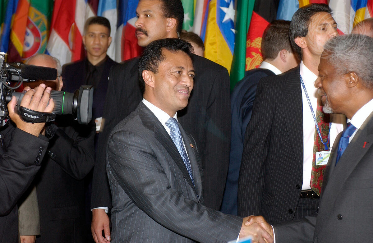 Secretary-General Kofi Annan (right) with Marc Ravalomanana, President of the Republic of Madagascar, at the annual luncheon the Secretary-General hosts to honour the Heads of State and Government attending the fifty-eighth session of the General Assembly.
