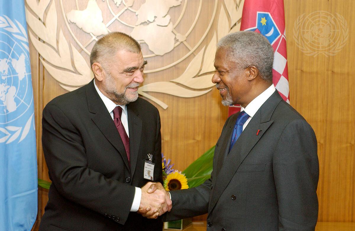 Secretary-General Kofi Annan (right) meets with Stjepan Mesic, President of the Republic of Croatia.