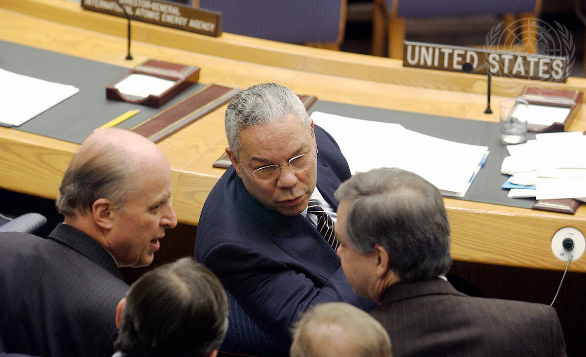 Colin Powell, Secretary of State of the United States of America, addresses the Security Council this morning.