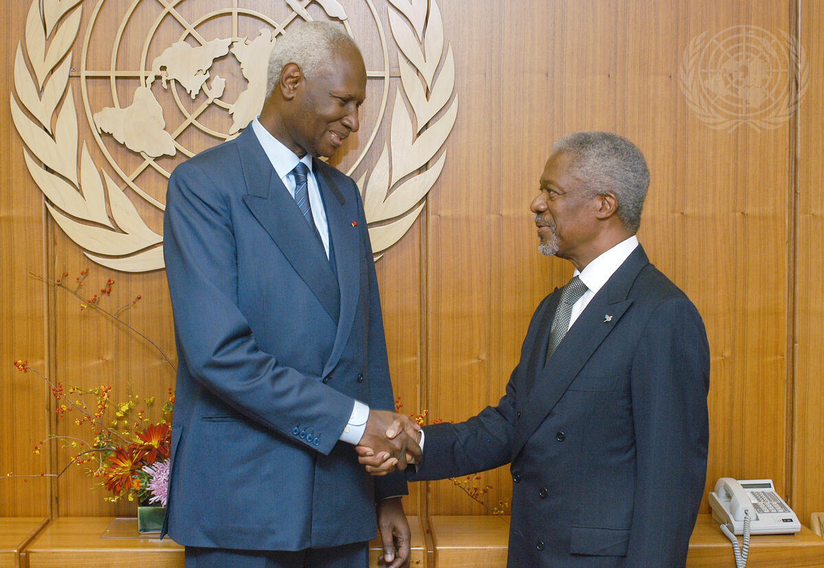 Secretary-General Kofi Annan (right) meets with Abdou Diouf, former President of the Republic of Senegal and Secretary-General of the International Organization of la Francophonie.