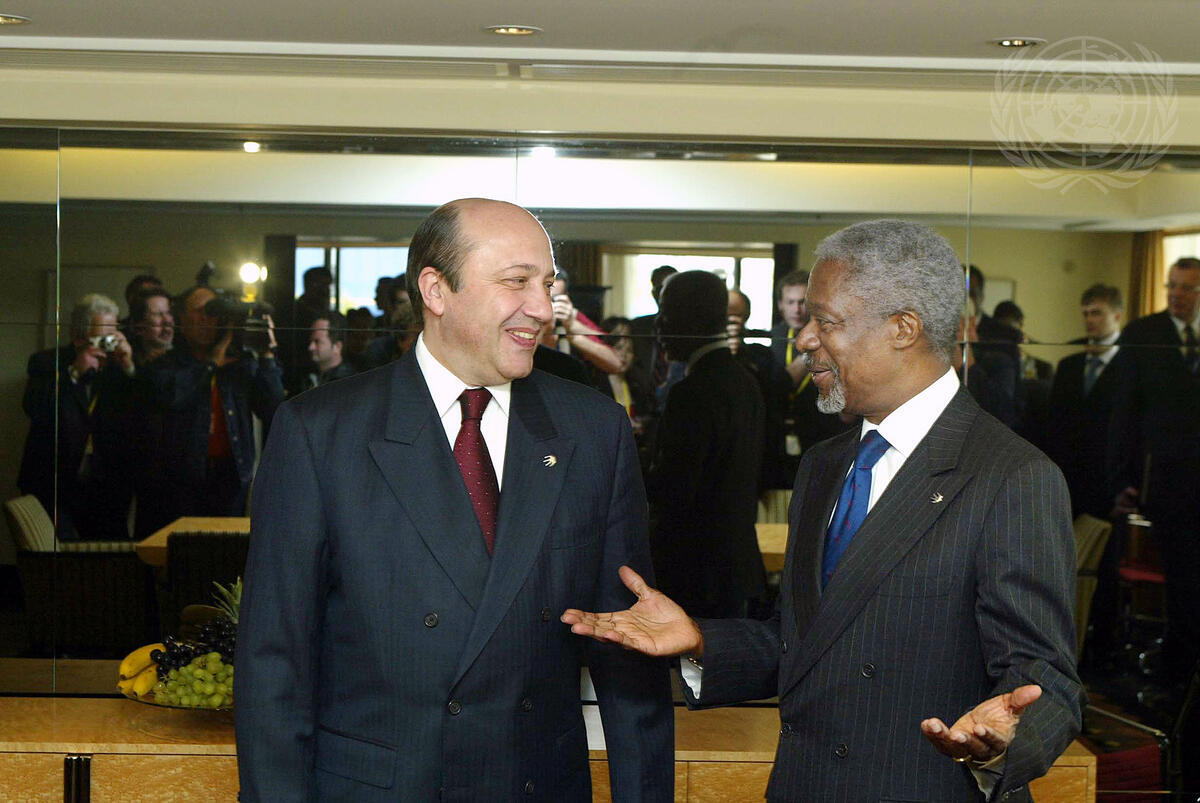 Shown is Secretary-General Kofi Annan (right) meeting with Foreign Minister Igor Ivanov of the Russian Federation.