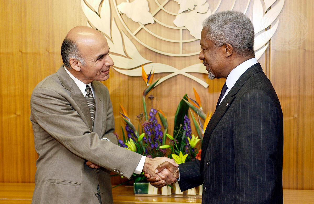 Secretary-General Kofi Annan (right) meets with Ashraf Ghani, Minister of Finance of Afghanistan.