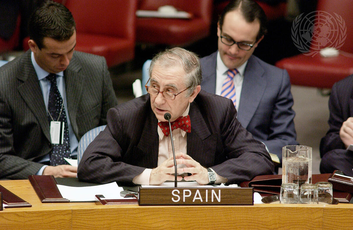 Ambassador Inocencio Arias, Permanent Representative of Spain to the United Nations, speaking at today's Security Council meeting. The Council confirmed Ambassador Arias's appointment as the new Counter-Terrorism Committee Chairman at today's meeting.