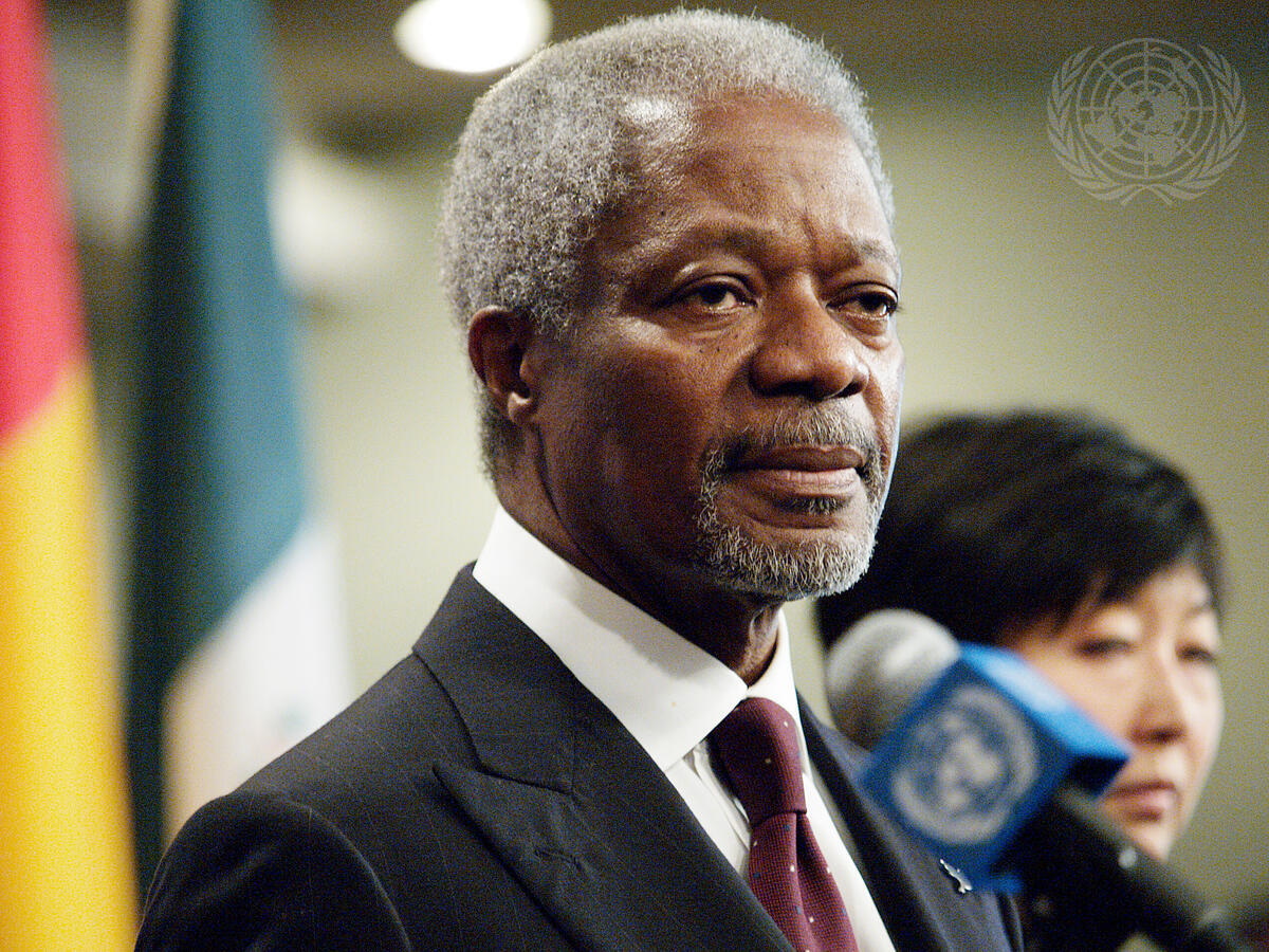 Secretary-General Kofi Annan briefing correspondents after the Security Council meeting.