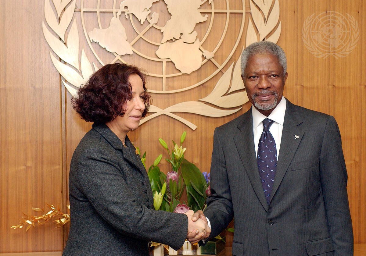Secretary-General Kofi Annan (right) meets with Ana Palacio, Minister for Foreign Affairs of Spain.