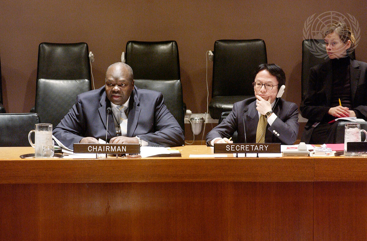 Bacre Ndiaye (left), Director of the New York Office of the High Commissioner for Human Rights, speaking at today's meeting. At right is Goro Onojima, Secretary of the Committee.