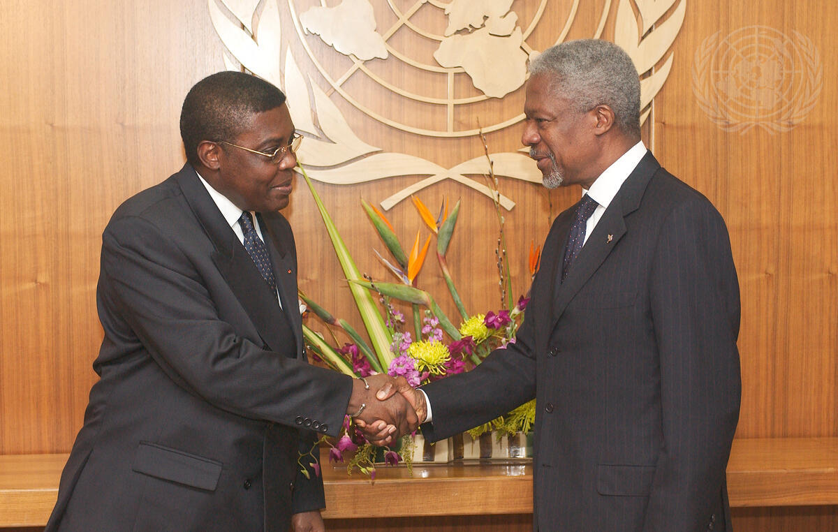 Secretary-General Kofi Annan (right) meets with Roland Y. Kpotsra, Minister for Foreign Affairs of Togo.