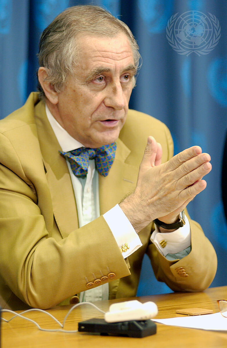Inocencio F. Arias of Spain, Permanent Representative of Spain to the United Nations and President of the Security Council for the month of July, briefs correspondents on the Security Council's work programme for this month at a press conference today at United Nations headquarters.