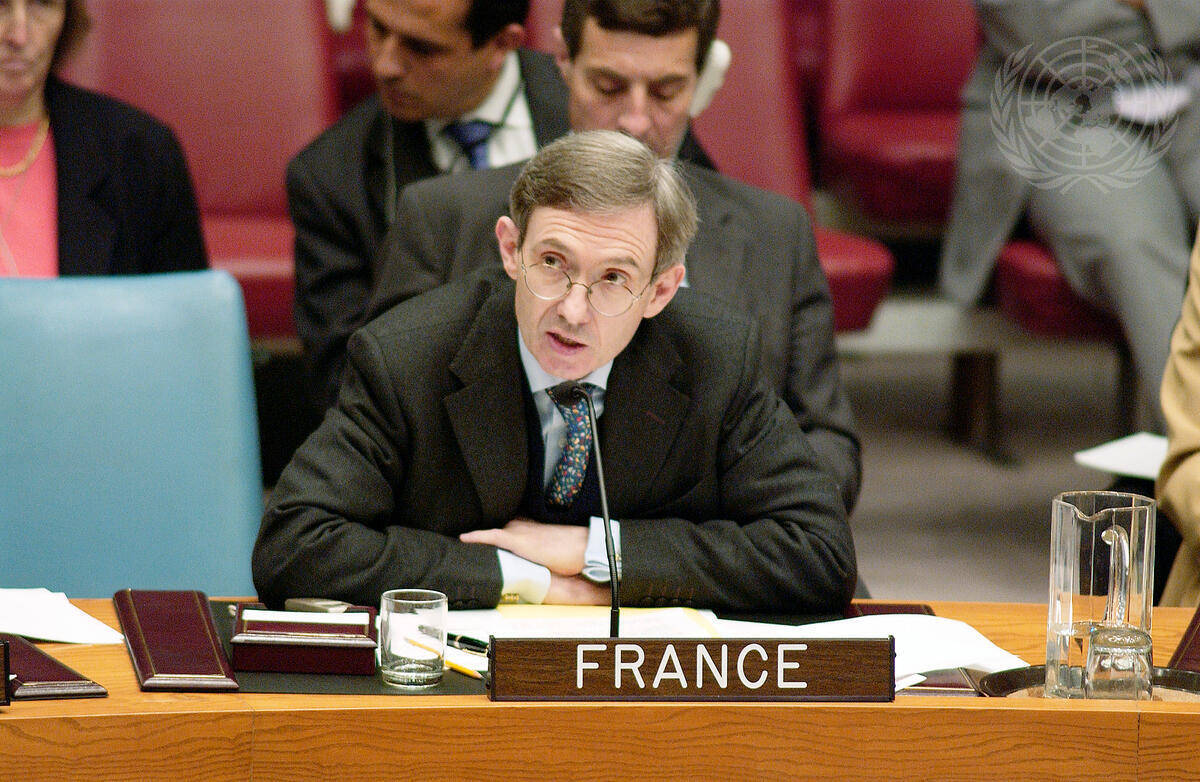 Michel Duclos, Deputy Permanent Representative of France to the United Nations, addresses the Council after this morning's vote passing resolution 1487 (12 in favour with three abstentions: France, Germany and Syrian Arab Republic) and thereby renewing the request of resolution 1422 (2002).