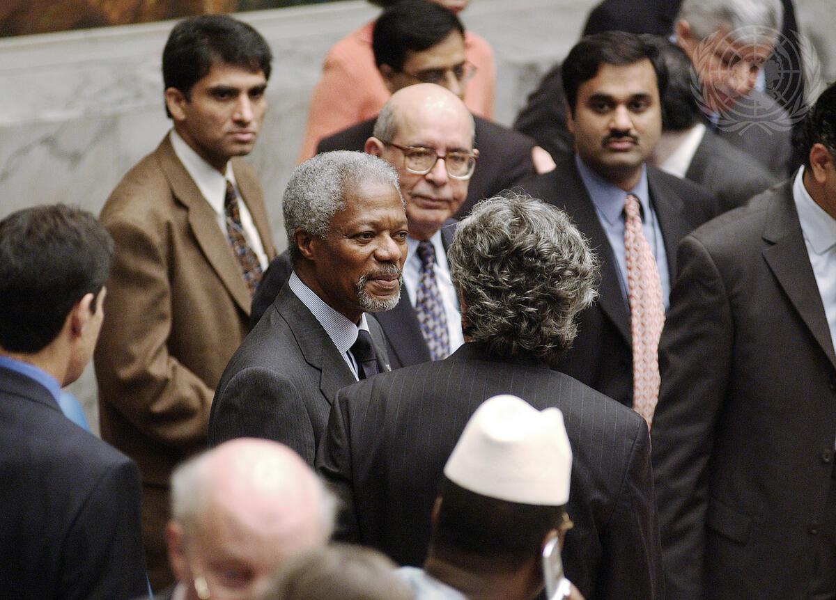 An informal view of Secretary-General Kofi Annan (centre), in discussion with other members of the Security Council this morning.