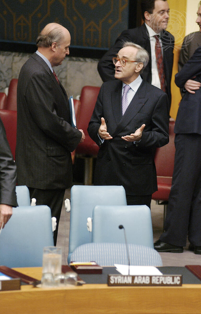 An informal view of Jean-Marc de La Sabliere (right), Permanent Representative of France to the United Nations and John D. Negroponte, Permanent Representative of the United States to the United Nations.