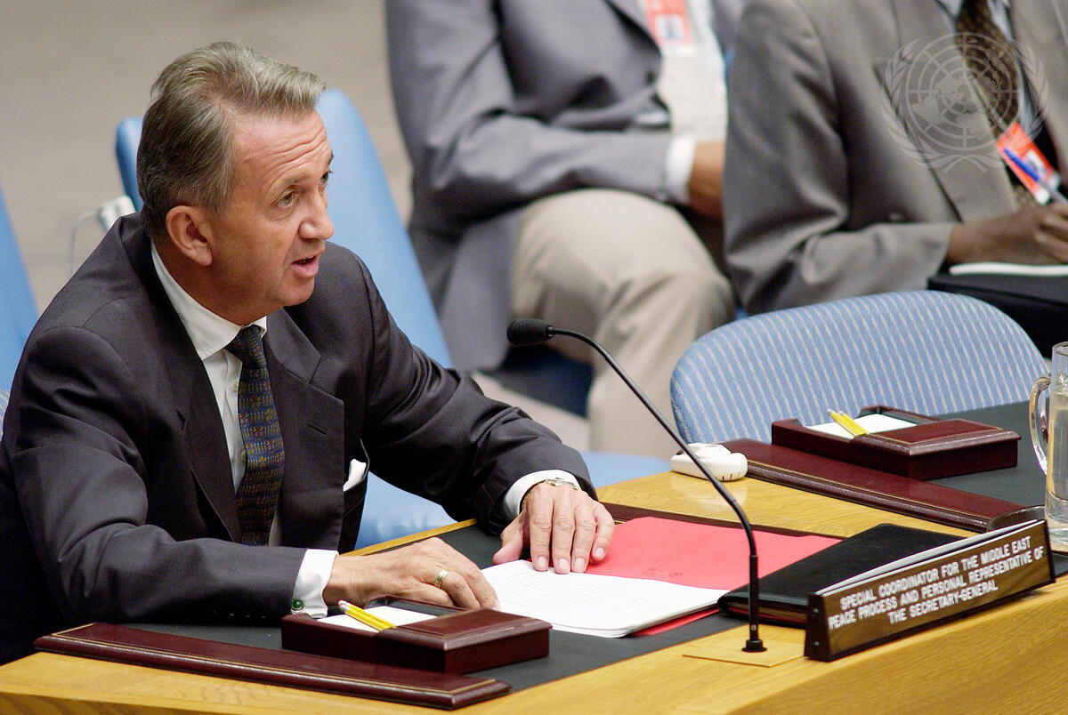 Terje Roed-Larsen (Norway), Special Coordinator for the Middle East Peace Process and Personal Representative of the Secretary-General to the Palestine Liberation Organization and the Palestinian Authority, addresses the Security Council this morning.