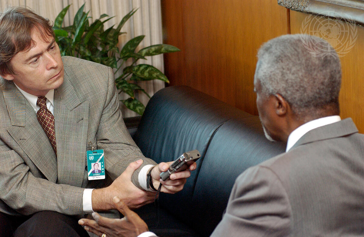 Secretary-General Kofi Annan (right) at an interview with a reporter from the Daily Pravo.