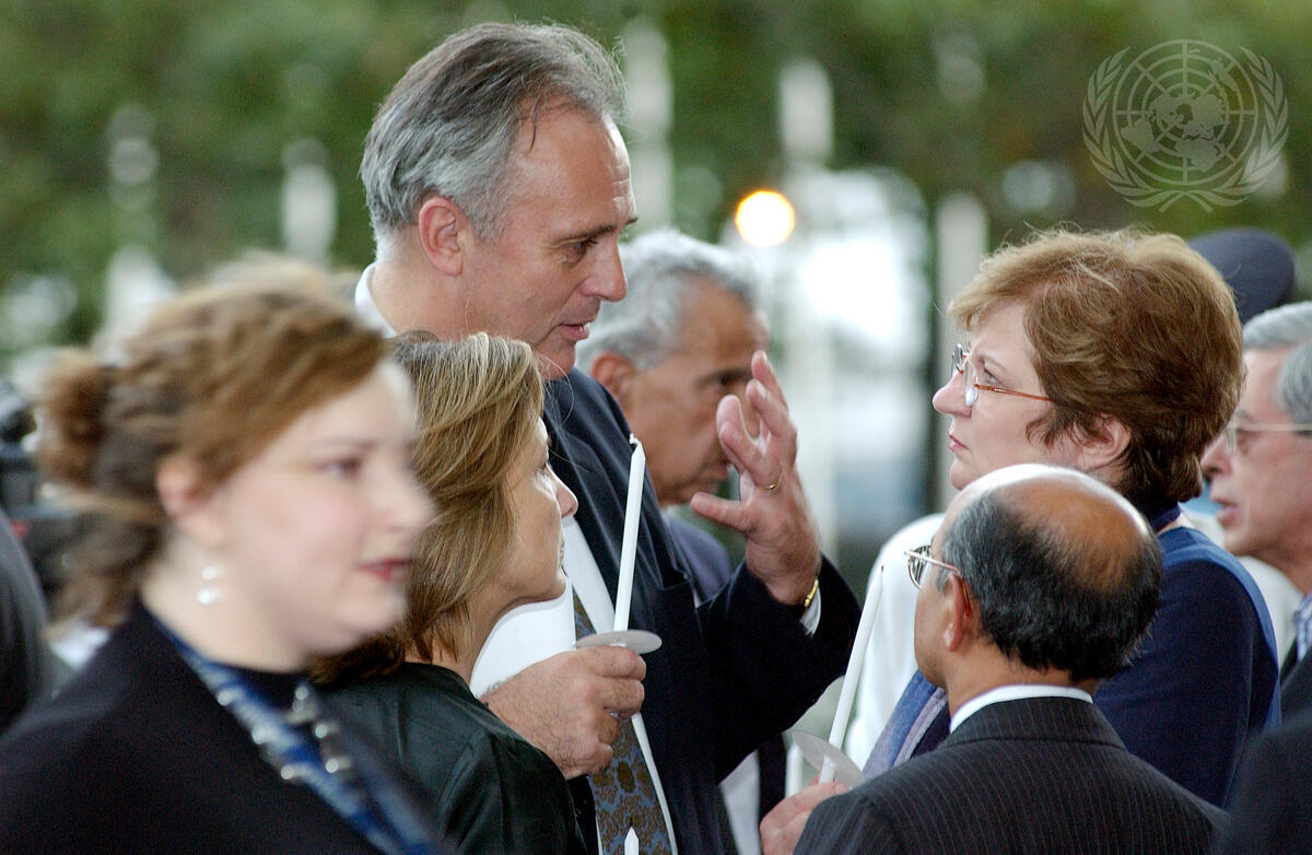 Deputy-Secretary-General Louise Fréchette (right) and Mark Malloch Brown (left), Administrator of the United Nations Development Programme (left), at the vigil.