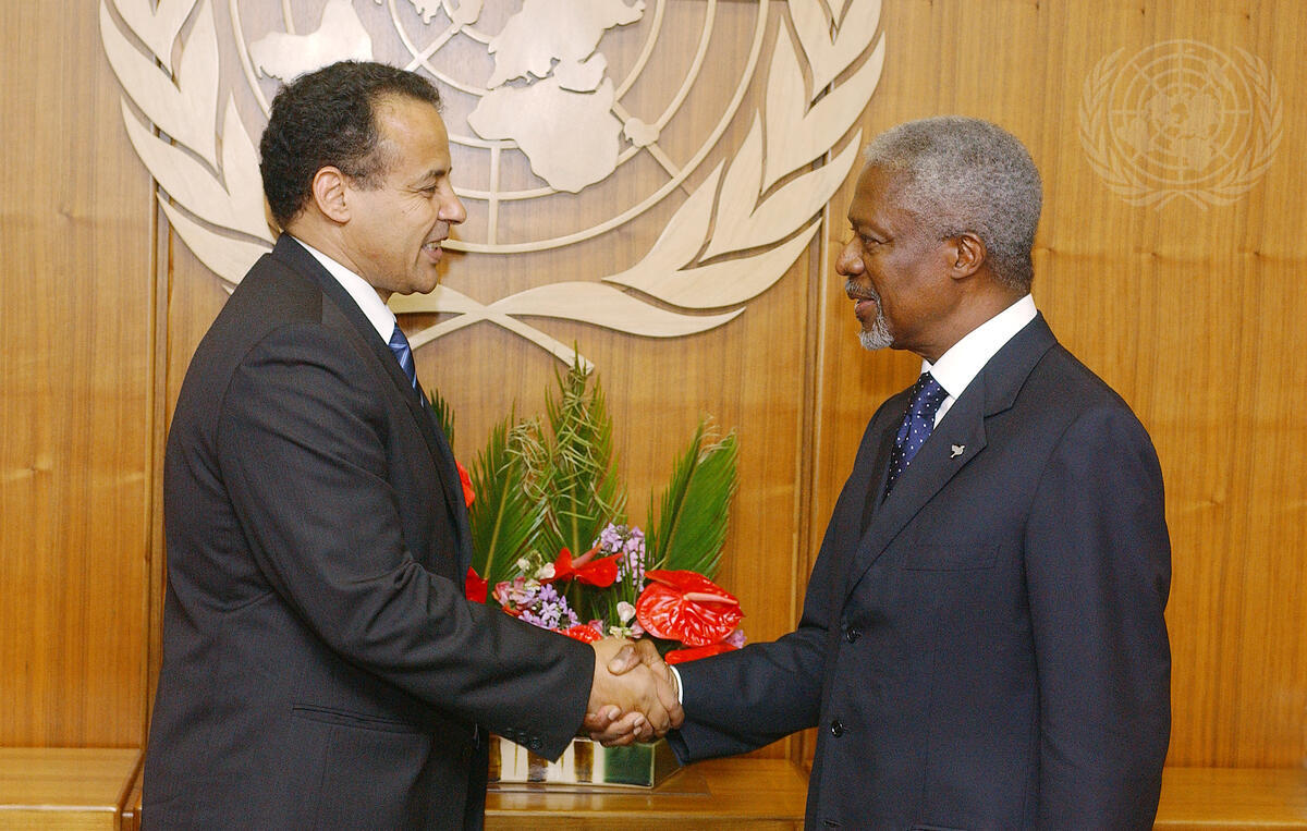 Secretary-General Kofi Annan (right), meets with Mohammed Khadad, Coordinator of the Polisario Front with the United Nations Mission for the Referendum in Western Sahara.