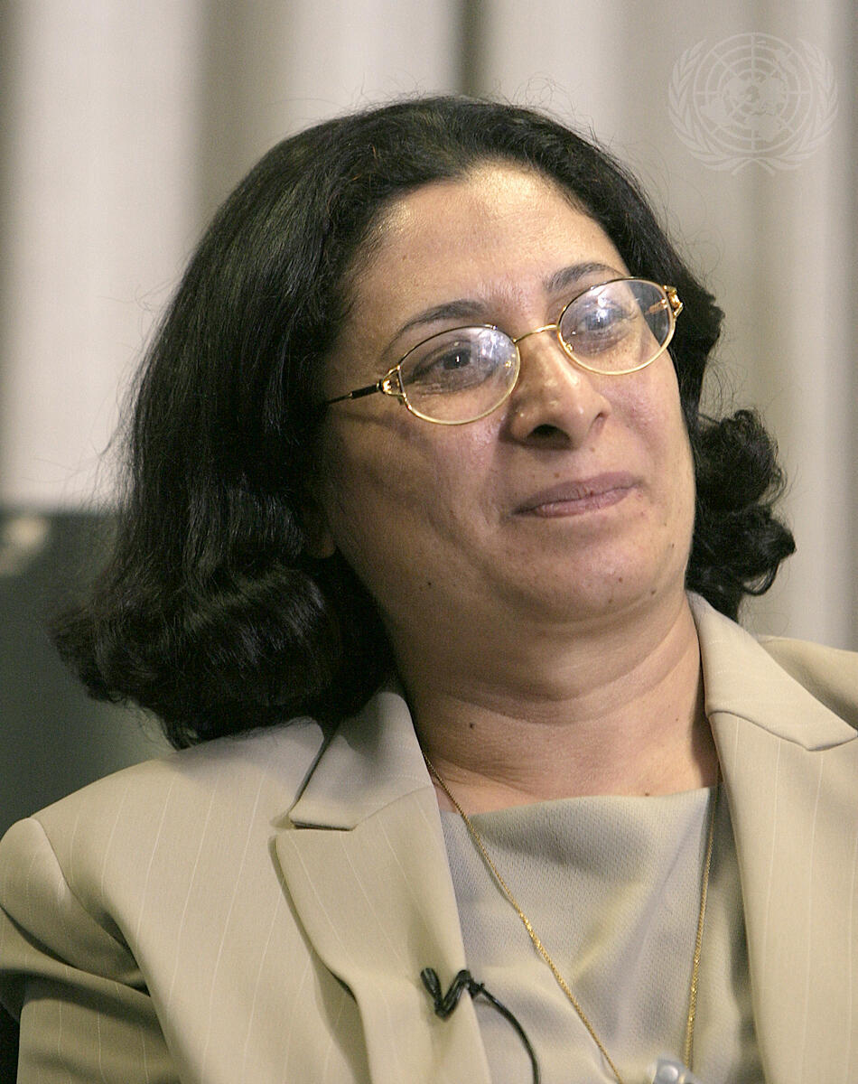 Akila al-Hashimi, Member of the Iraqi Governing Council, addressing correspondents at today's press conference.
