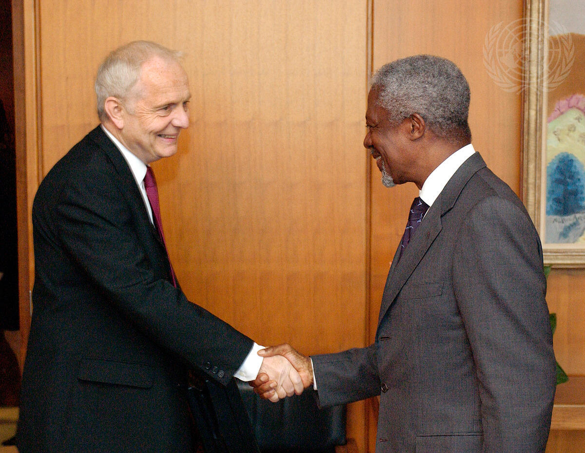 Secretary-General Kofi Annan (right) meets with Emyr Jones Parry (United Kingdom of Great Britain and Northern Ireland), President of the Security Council for the month of September.
