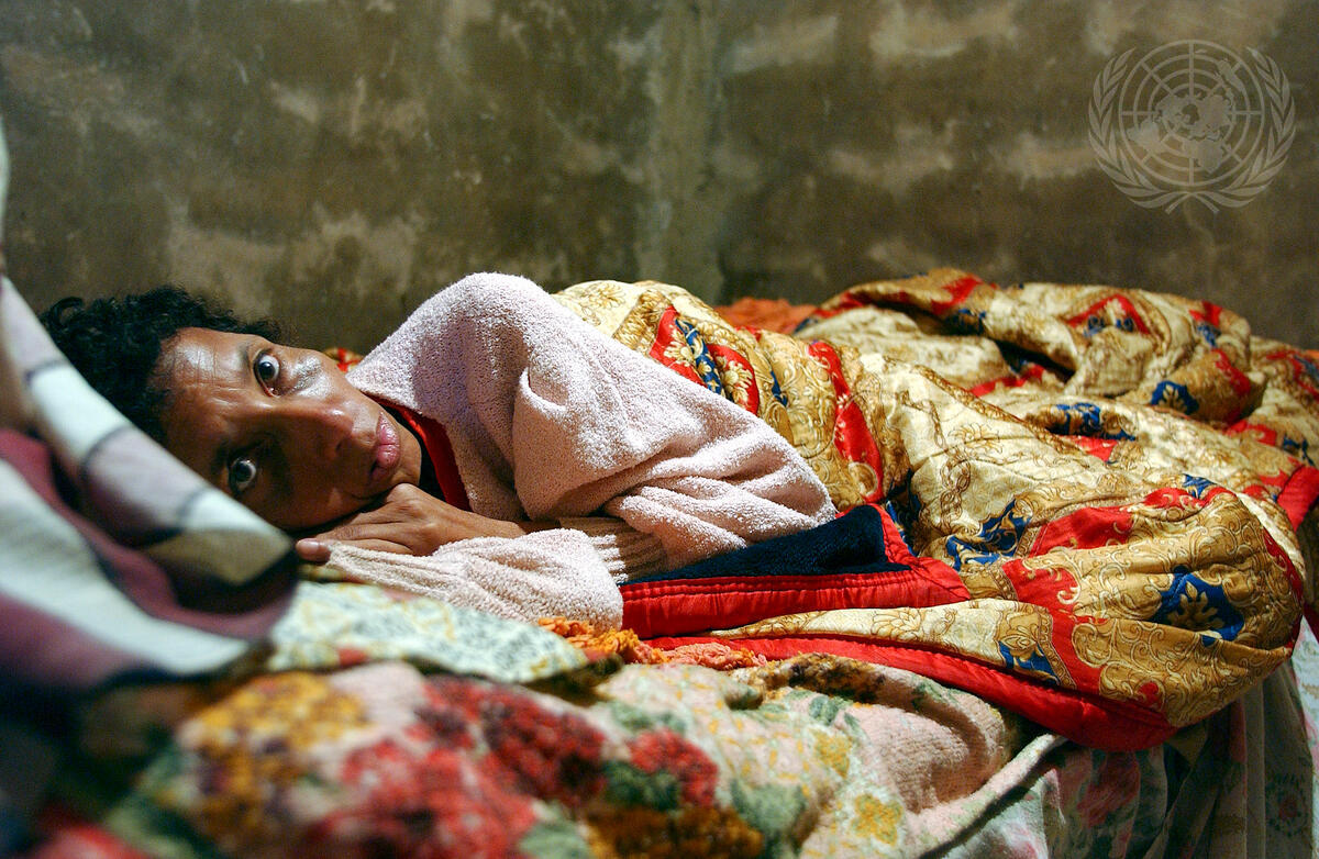 A woman rests in her home in Xai-Xai, Gaza Province, Mozambique. She is a patient at the Xai-Xai Day Care Clinic, a centre specialized in treating parents and children living with HIV/AIDS and supported by Gaza's Provincial Directorate of Health, the United Nations Children's Fund (UNICEF) and non-governmental organization Dor Sem Fronteiras. A mother to two children, the woman has been bedridden since the AIDS virus has taken away her ability to walk.