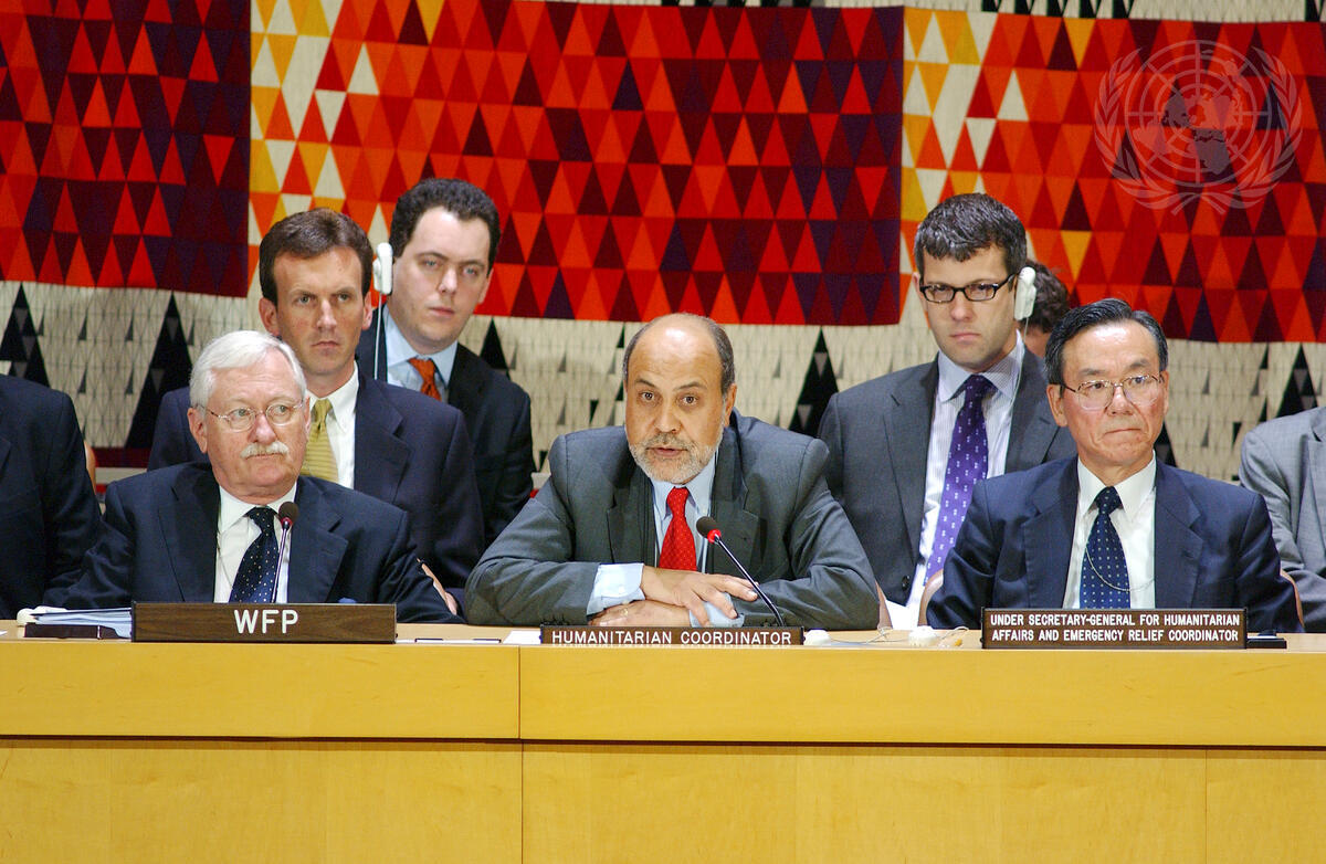 From left to right: Deputy-Executive-Director of the World Food Programme, Jean-Jacques Graisse, Humanitarian Coordinator for Iraq, Ramiro Lopez da Silva, and Under-Secretary-General for Humanitarian Affairs Kenzo Ochima.