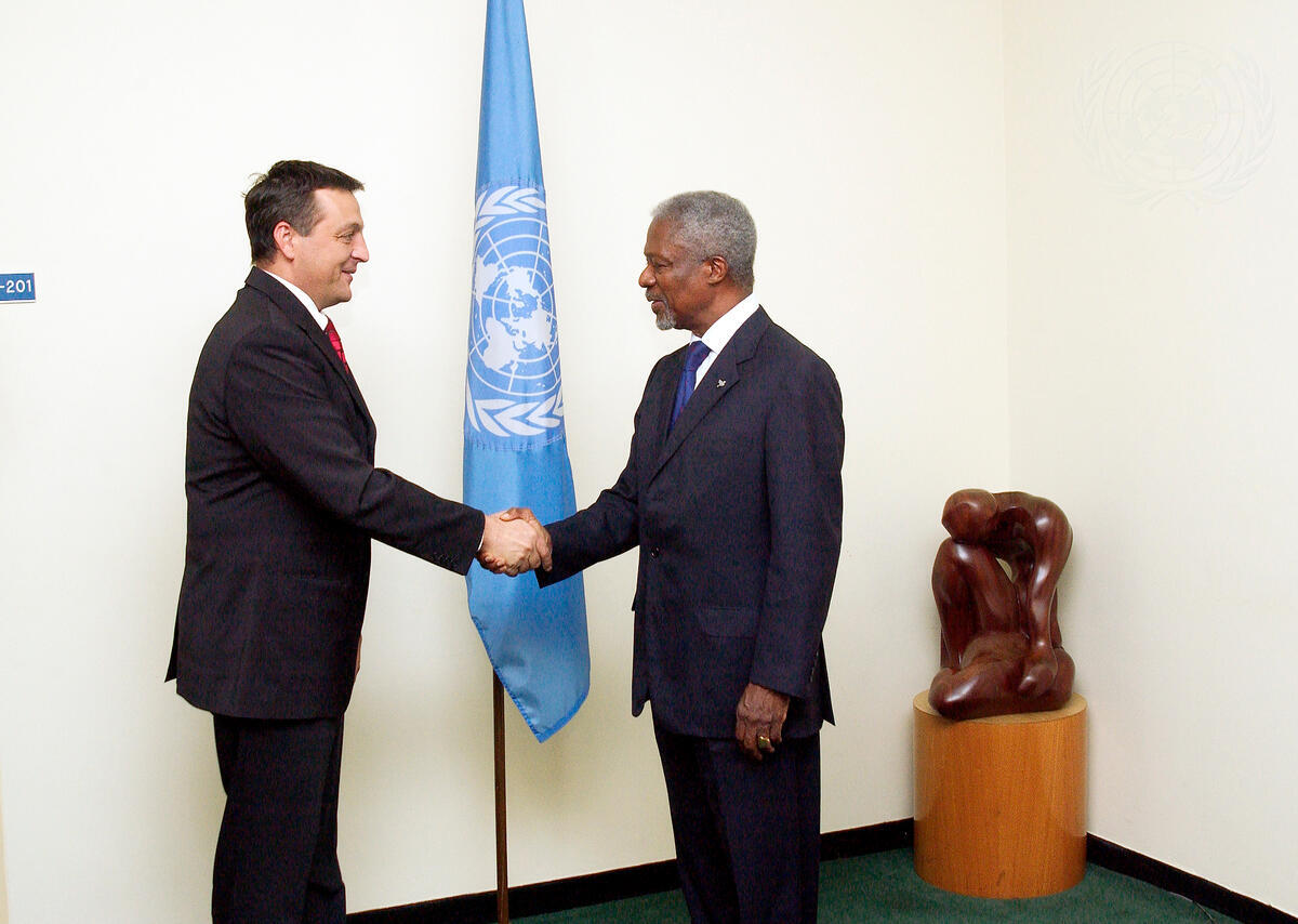 Secretary-General Kofi Annan (right), meets with Zoran Zivkovic, Prime Minister of the Republic of Siberia.