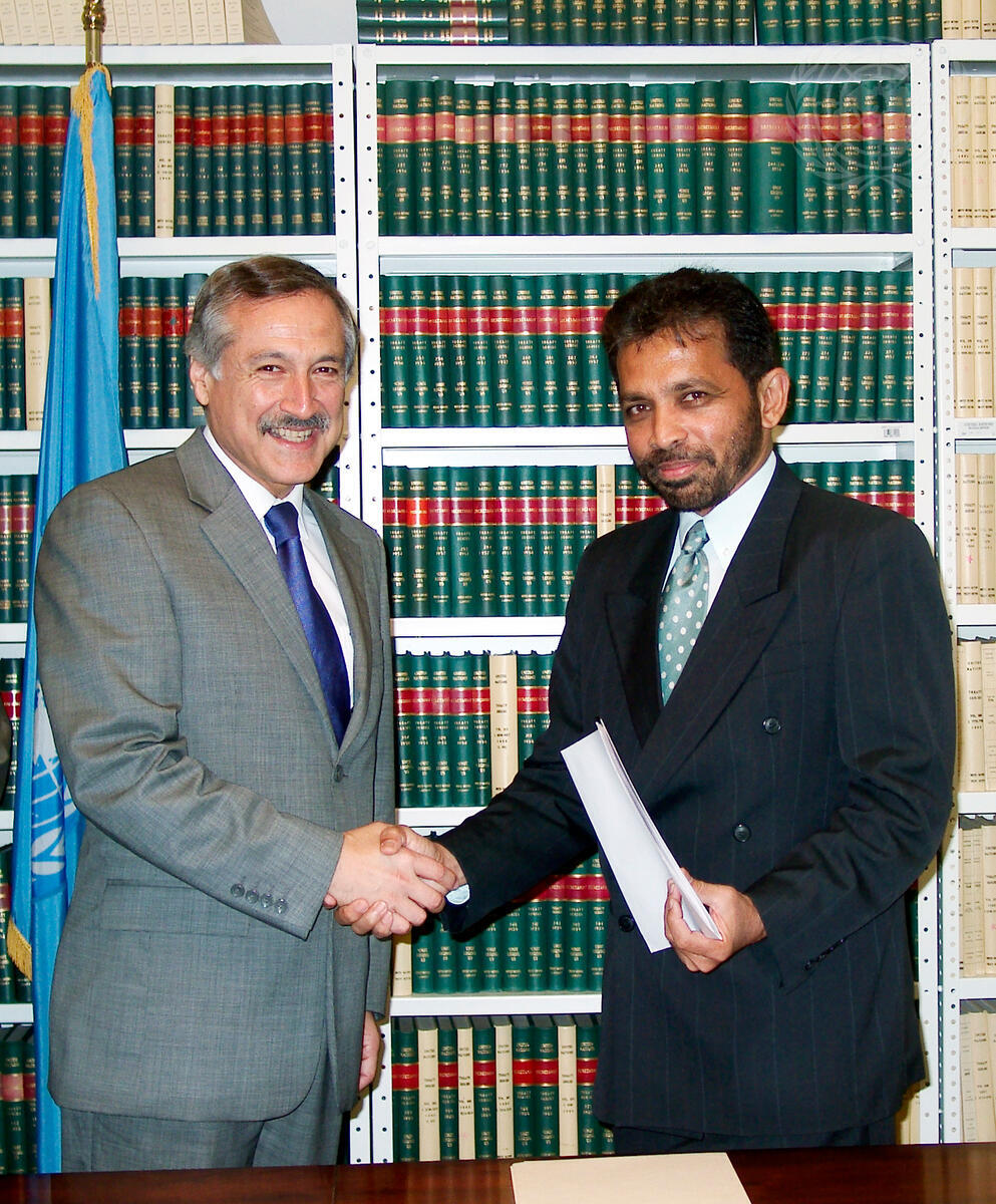 Heraldo Muñoz, Permanent Representative of Chile (left) signs the "Optional Protocol to the Convention on the Rights of the Child on the Involvement of Children in Armed Conflict".